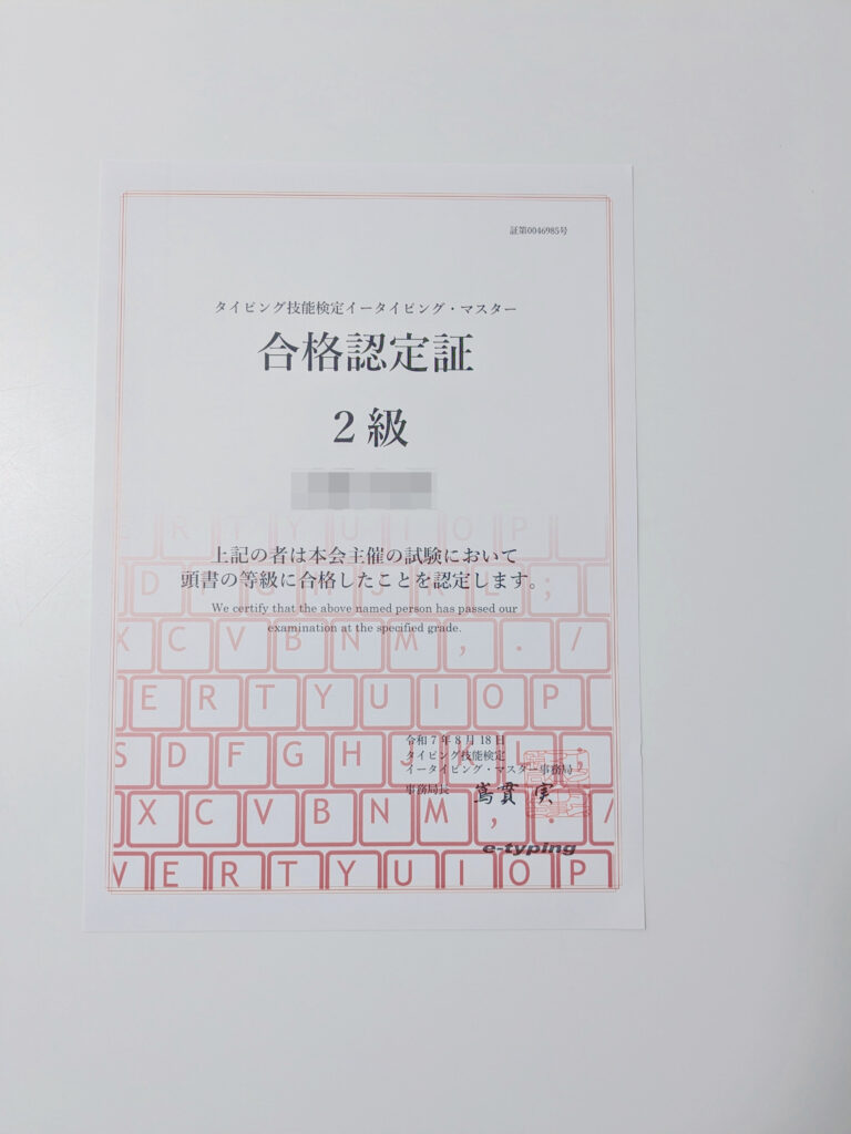 小学校5年生の子どもがタイピング検定2級に合格しました!